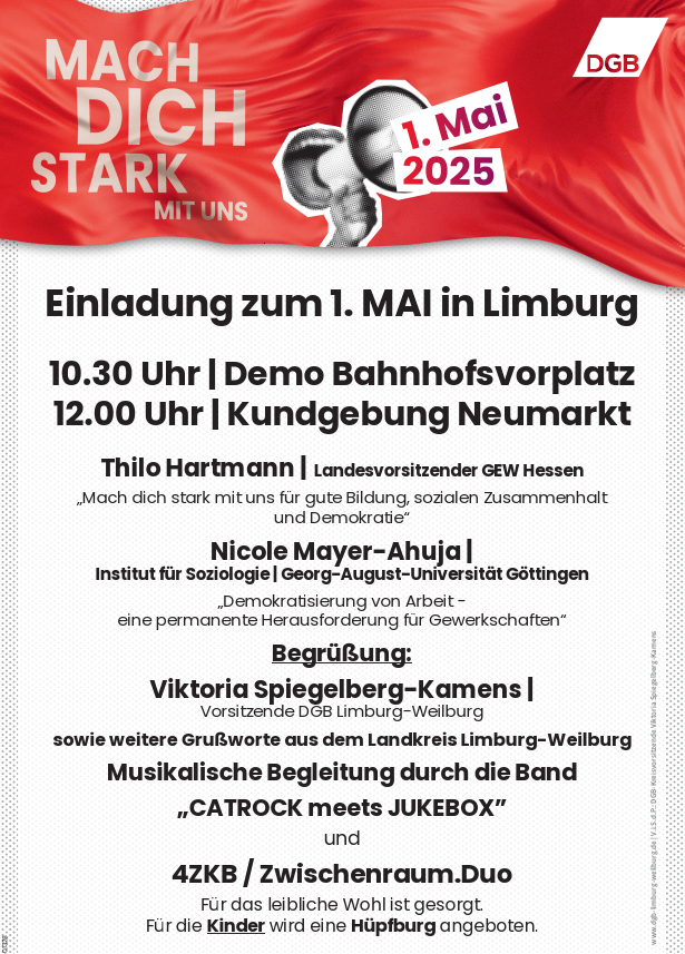 Die Gewerkschaften und die Katholische Arbeitnehmer-Bewegung (KAB) rufen am 1.Mai in Limburg zur DEMO auf. Die Regierung legt nicht nur die Axt bei den erneubaren Energien, sondern auch beim „Sozialstaat“ an.