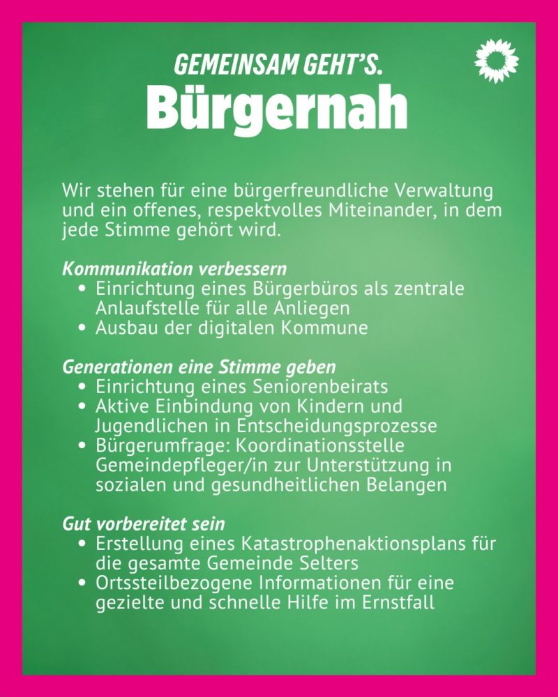 Mit deiner Unterstützung bei der Wahl schaffen wir es, den grünen Gedanken in der politischen Landschaft unserer Gemeinde zu leben und wachsen zu lassen.